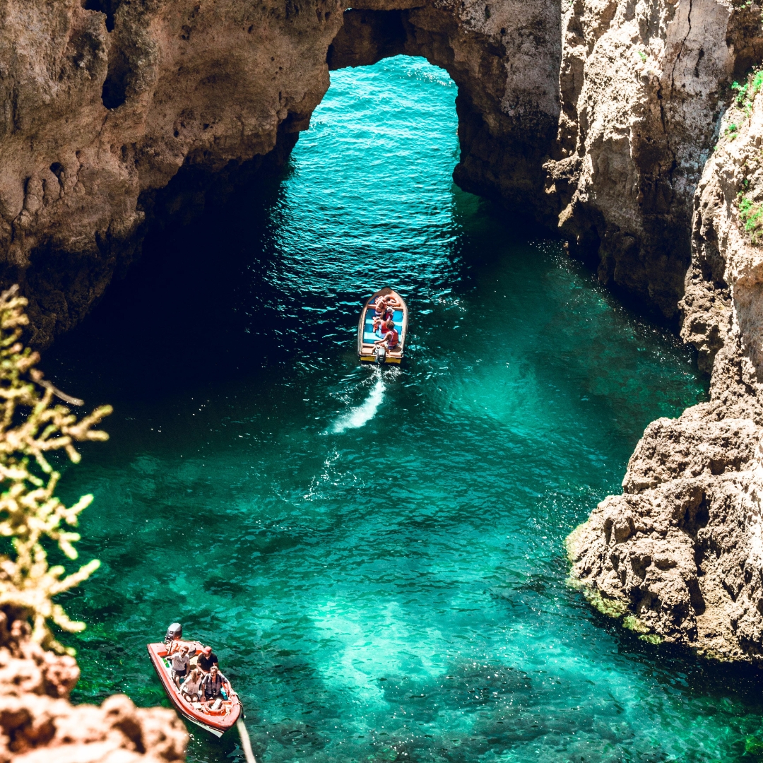 Algarve, onde praias de areia dourada encontram falésias deslumbrantes. Aproveite o clima ameno, a gastronomia deliciosa.